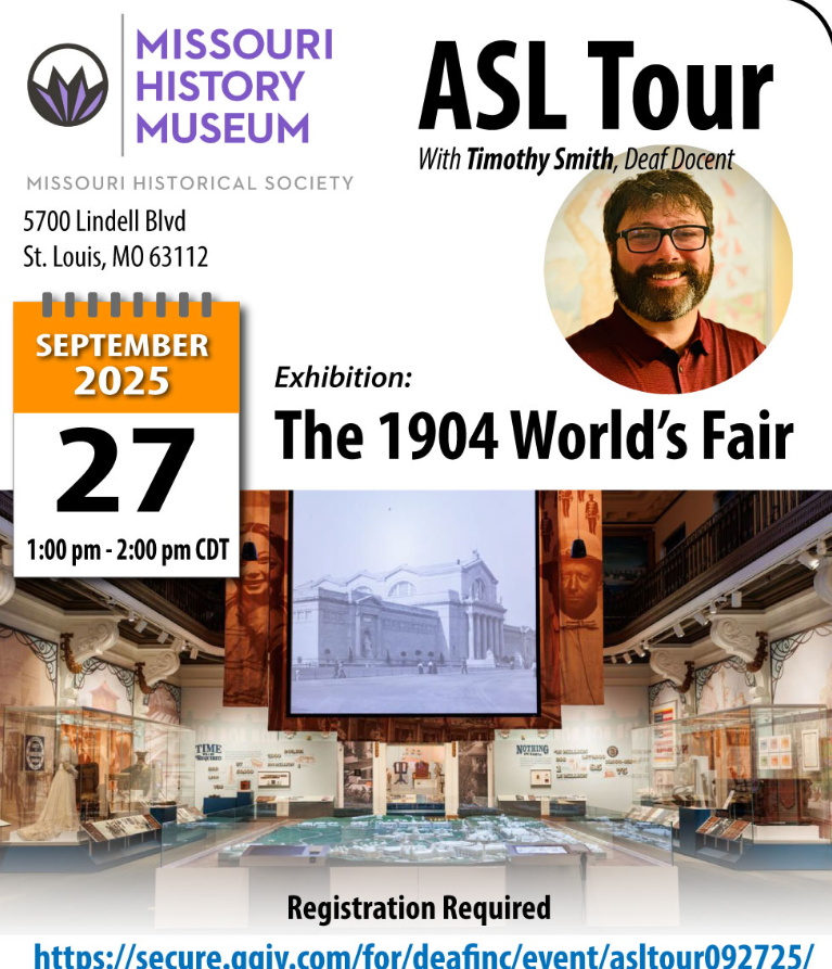 Join our Deaf docent, Tim Smith, as he leads you through a fascinating exhibition – The 1904 World’s Fair – entirely in sign language.